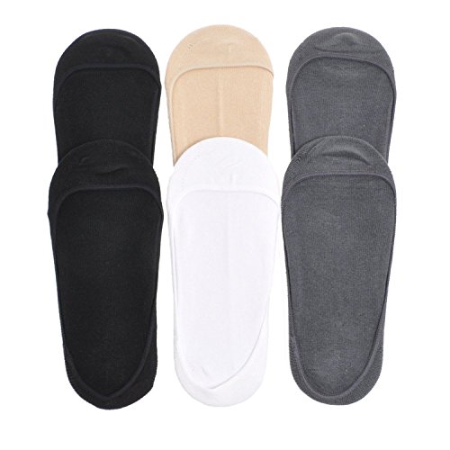 Angelina 6 Pairs, No-Show Cotton Liners with Silicon Non-slip Grip