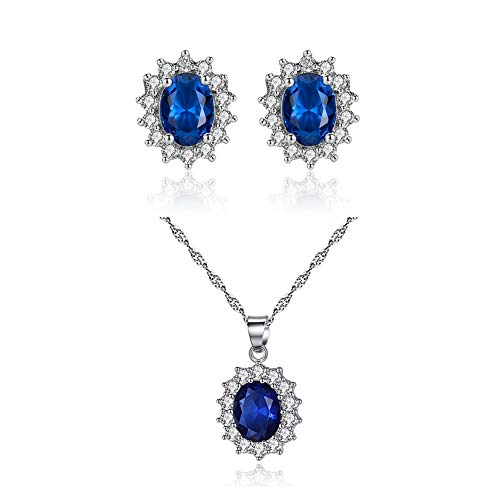 - STYLISH JEWELRY SET: Well designed artificial sapphire and rhinestone paved jewelries. Glitter and eye catching. This necklace and earrings set comes in a classic elegant style. That can make you the focus of people. And bring you good mood when you wearing them.