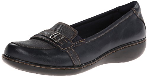 - Comfort dress loafer featuring snakeskin textured paneling with decorative buckle at vamp