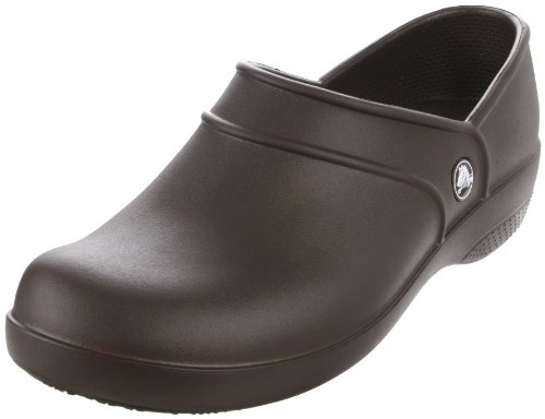 The Neria Work clog from Crocs is a comfortable shoe designed to handle to strains of hard work. Designed for work environments food service, health care, hospitality, and more. Crosliteâ" upper offers durability and custom form-to-foot fit. Slip-on silhouette with open entry provides an easy on and off. Odor-resistant interior keeps your feet fresh. Molded Crosliteâ" footbed provides lasting support and comfort. Crocs Lockâ" tread delivers slip-resistance to ensure sure-footing on a variety of surfaces. Imported.