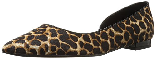 Donald j pliner perrie pointed toe ballet flat. upper is multi giraffe print hair calf with patent leather piping. fully leather lined. outsole is leather with rubber forepart.