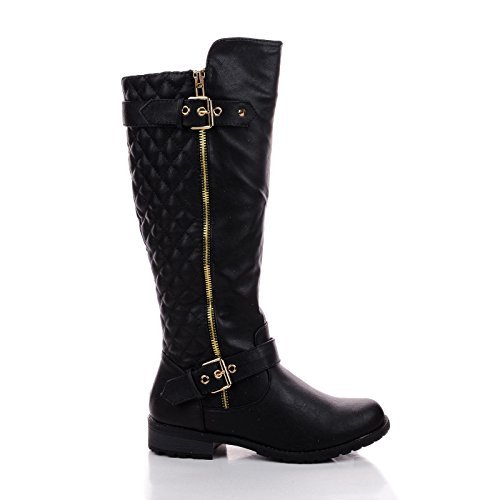 Forever Mango21 Black Knee High Quilted Buckle Riding Moto Boots-6.5