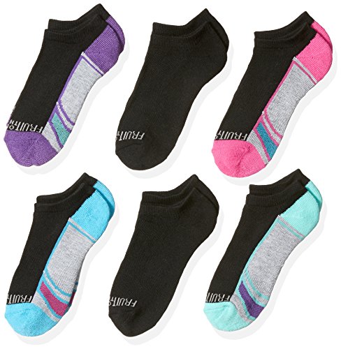 Fruit of the Loom Girls’ Little Everyday Active No Show Athletic Socks (6 Pack), Black, Shoe Size: 10.5-4