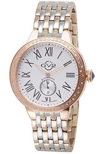 GV2 by Gevril Astor Womens Diamond Swiss Quartz Two Tone Rose Gold and Stainless Steel Bracelet Watch, (Model: 9106)