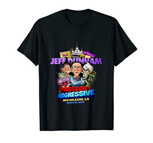 Stand out from the rest of the crowd!! This customized shirt features your favorite characters and lets everyone know that you were at the show in New Orleans, LA! ORDER NOW to receive your own LIMITED EDITION, officially licensed Jeff Dunham: Passively Aggressive tour shirt before they are gone! Collect them all!