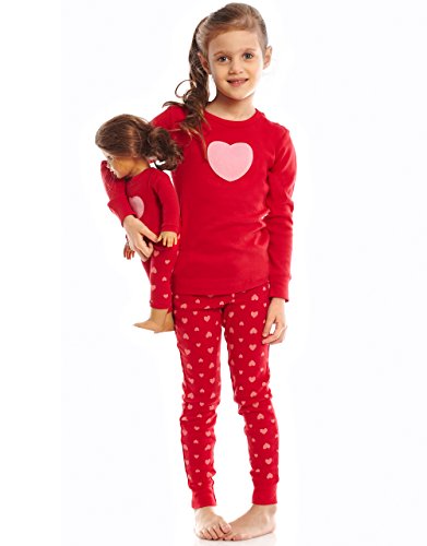 Leveret Little Girls “Hearts” 2 Piece Matching Kid & Doll Pajama Set (2T-10Y)