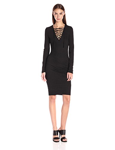 If you haven't worn a pam and Gela dress then you need to. Double layered on the bottom for extra smoothing, soft buttery material, and long sleeves. Your new LBD - just grey with a sexy lace-up front.