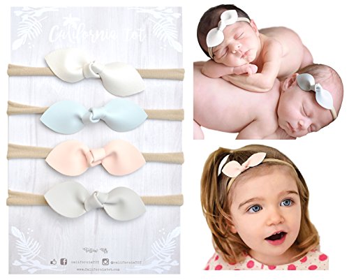Rabbit Ears Faux Leather Bow – Soft & Stretchy Headband for Baby, Toddler, Girls, Set of 4 (Pastel)