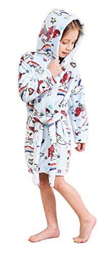 Soft Unicorn Hooded Bathrobe Sleepwear – Unicorn Gifts for Girls (5-6 Years, Unicorns Blue)