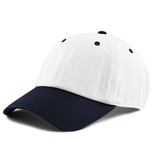 The Hat Depot Unisex Blank Washed Low Profile Cotton and Denim Baseball Cap Hat (White/Navy)