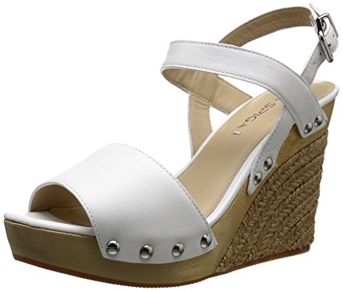 - Sandal featuring wood-look platform and braid-wrapped wedge